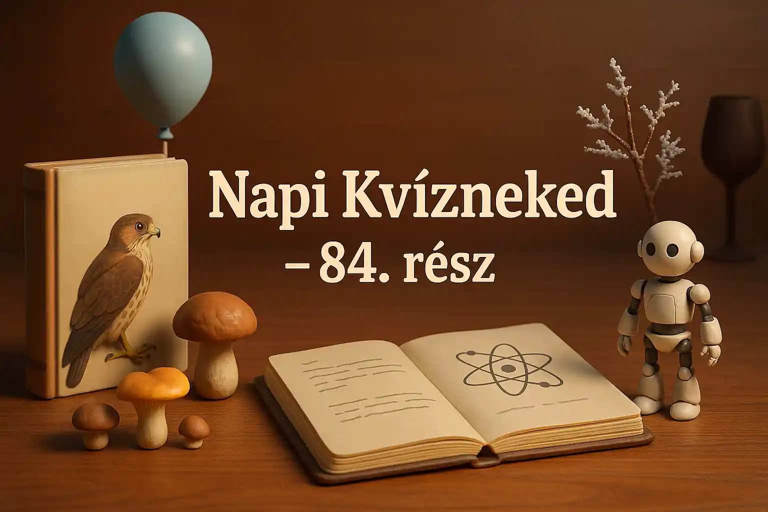 Ebben a vegyes természet és tudomány kvízben a ragadozómadaraktól és erdei gombáktól kezdve a zúzmara működésén át egészen a humanoid robotokig kalandozhatsz. Közben szóba kerül a Biblia, a szomszédos Szlovákia fővárosa, a furmint és olyan hétköznapi jelenségek is, mint a záptojás szaga vagy a héliumos lufi emelkedése. Ha szereted, amikor a mindennapi tapasztalat mögé nézve derül ki, mennyi természettudományos tudás lapul benned, ez a kvíz pont neked szól.